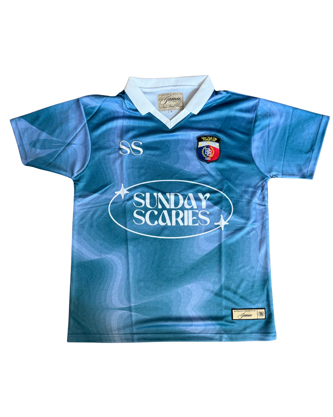 wear your sunday best. MERCH Sunday Scaries x Jamie Soccer Jersey Collab $50.00 Small Med Lar XLarge Add To Cart Added! Baby Blue Cropped Logo Tank $25.00 XSmall Small Medium Large Add To Cart Added! "can i get guestlist?" Black Tee $35.00 Large XLarge Add To Cart Added! Beige + Blue Logo Tee $35.00 XLarge Large Medium Add To Cart Added!